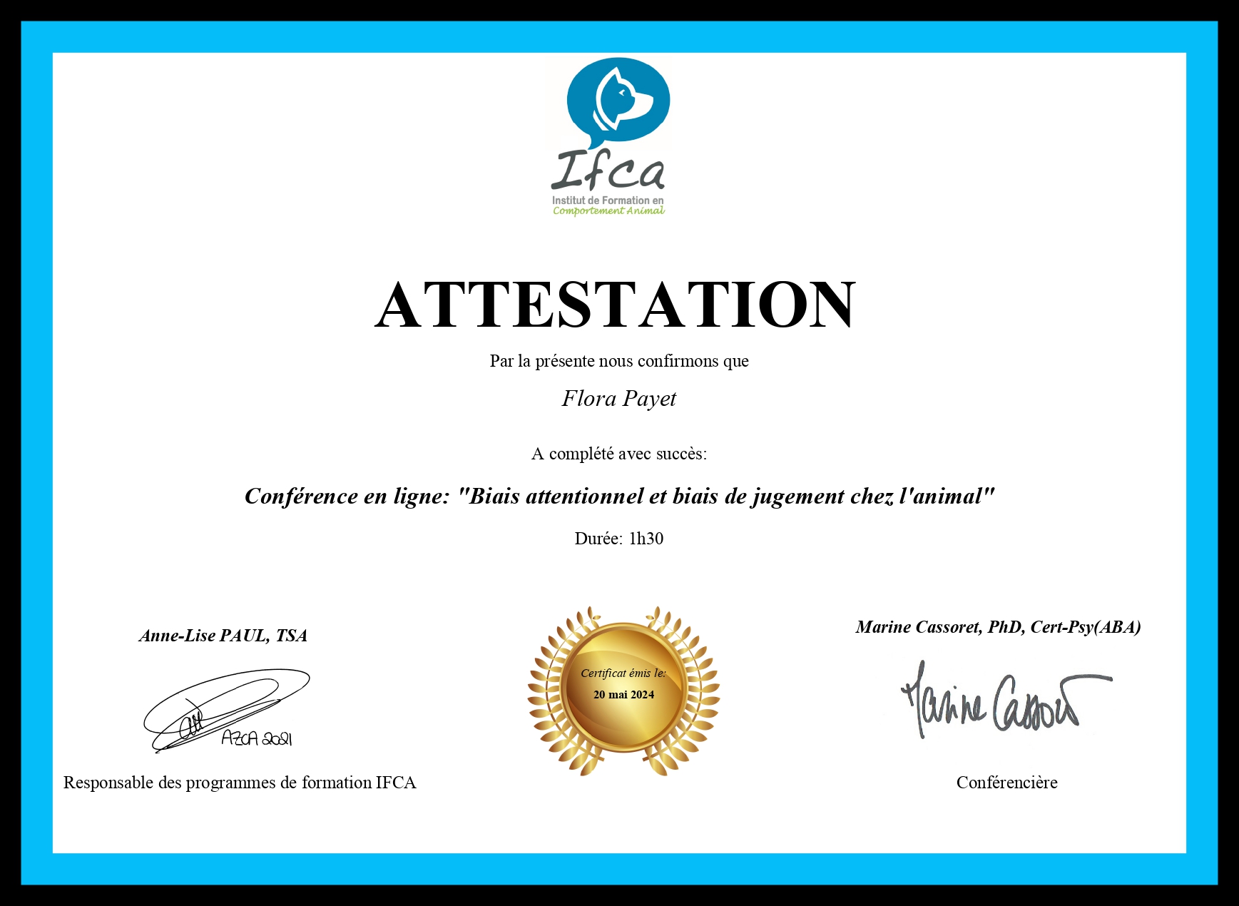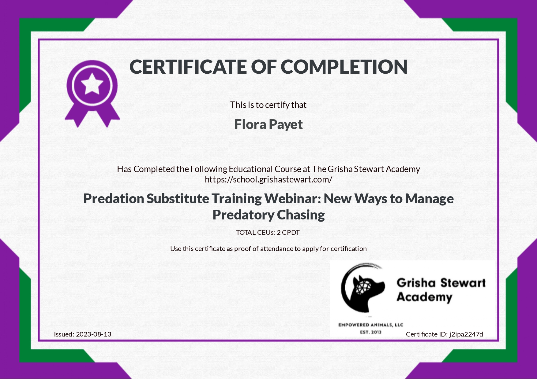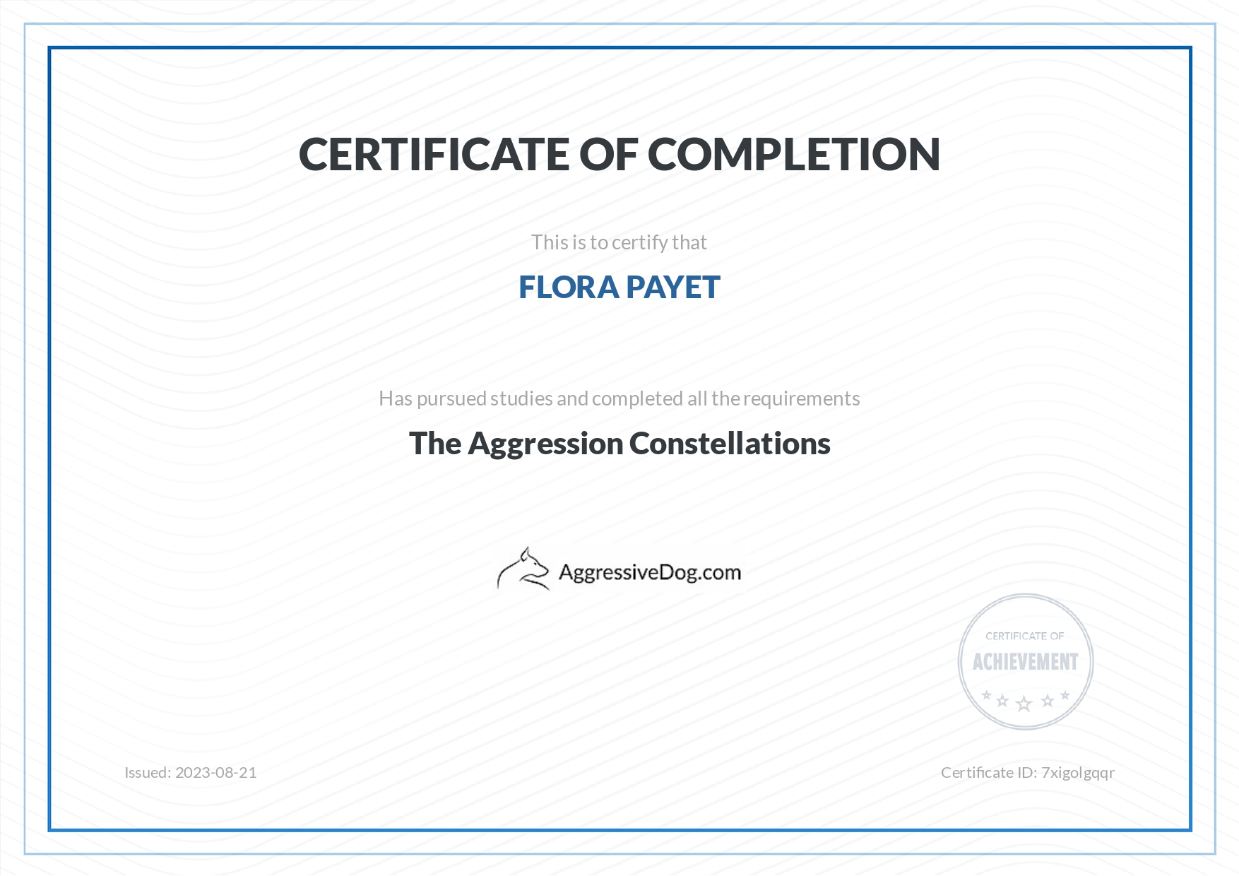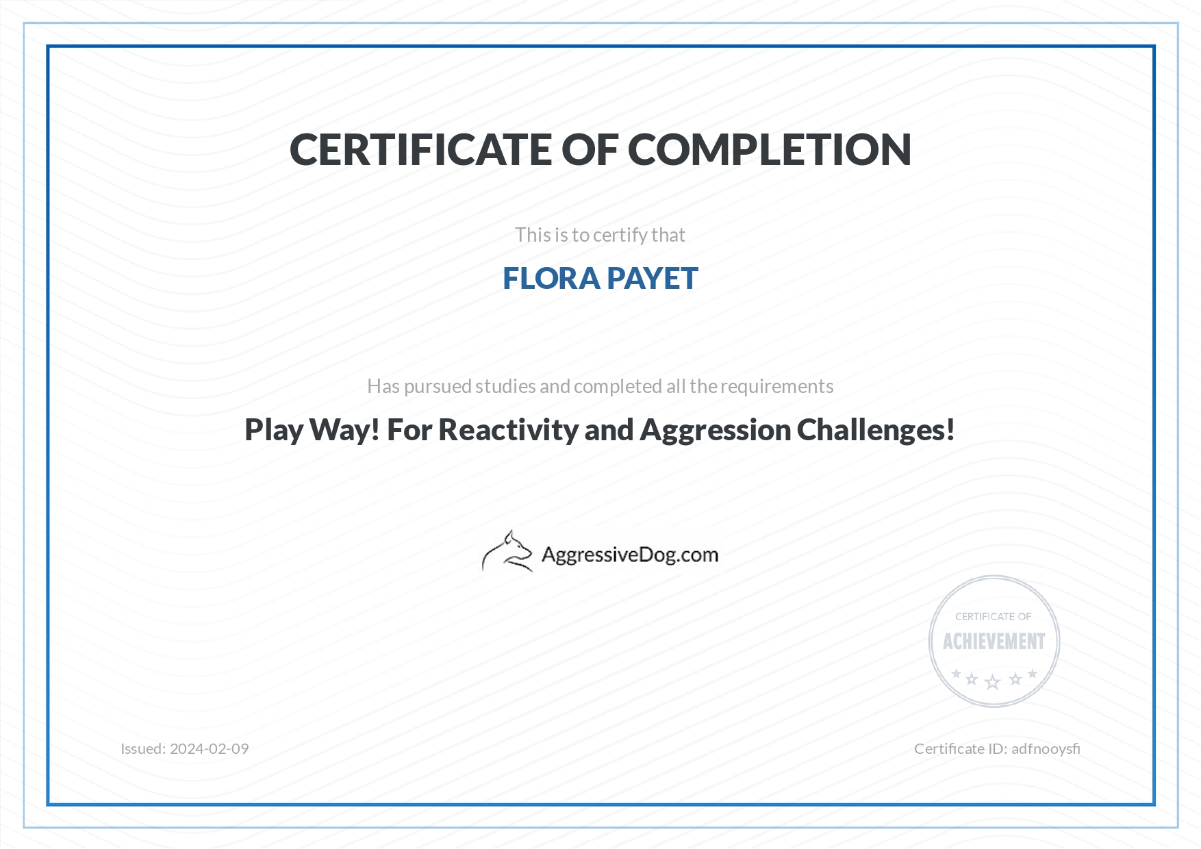 Je me forme régulièrement afin de répondre au mieux aux attentes de chaque binôme humain/chien et de lui proposer l’ accompagnement le plus personnalisé possible.